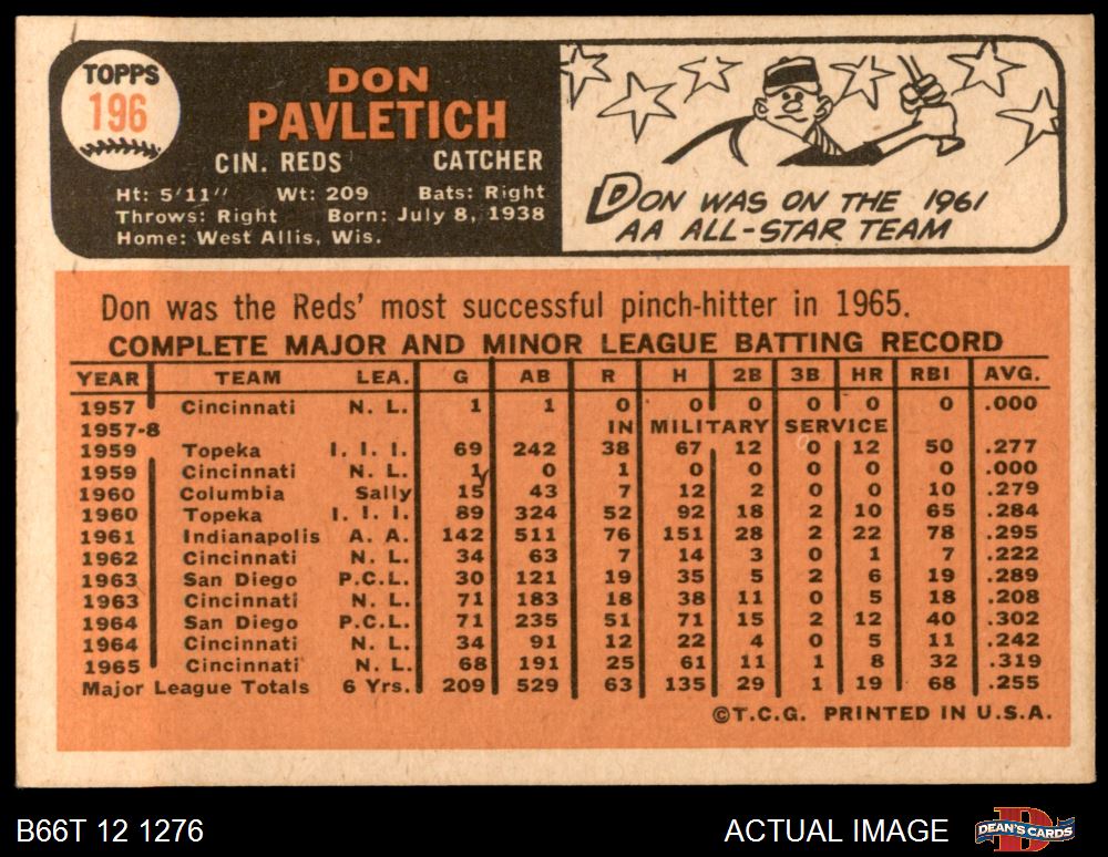 1966 Topps #196 Don Pavletich 7 - NM