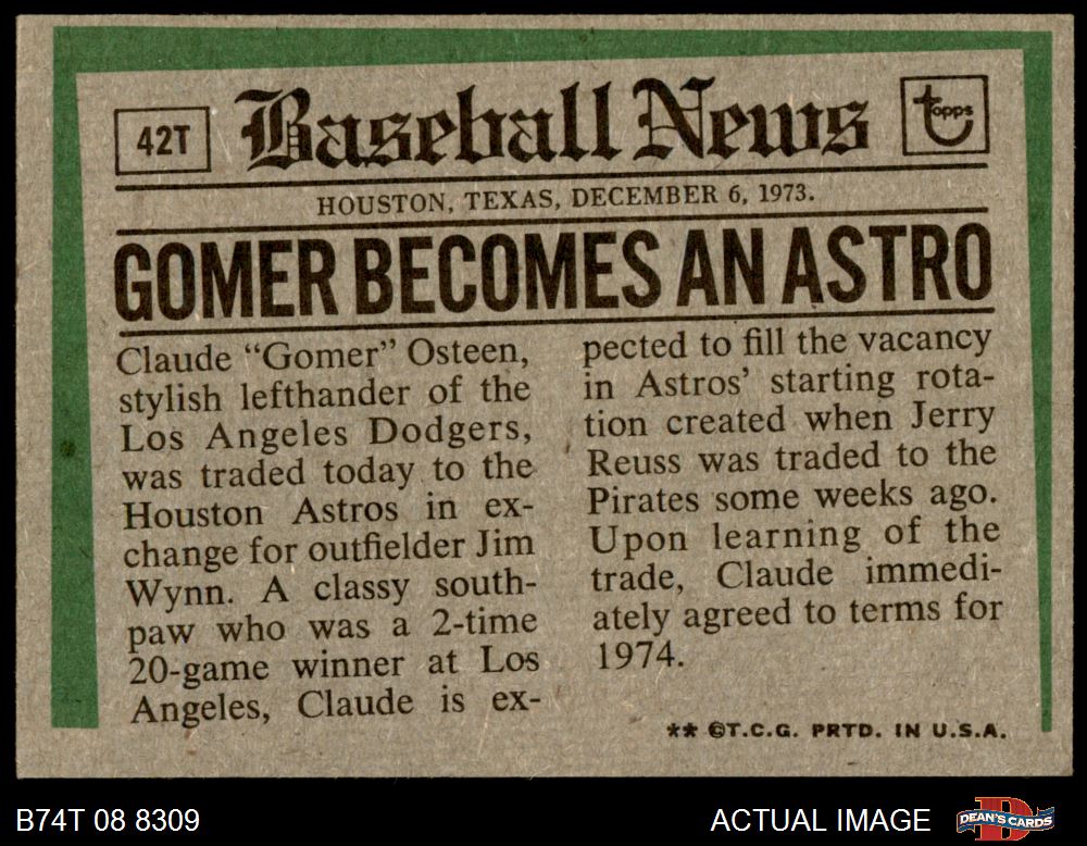 1974 Topps Traded #42 T - Claude Osteen Traded 6 - EX/MT