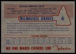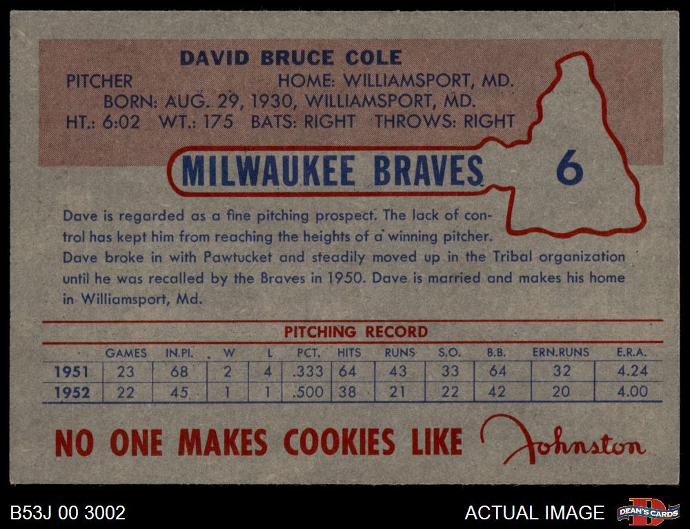 1953 Johnston Cookies #6 Dave Cole 6 - EX/MT