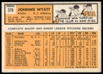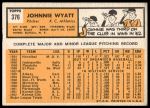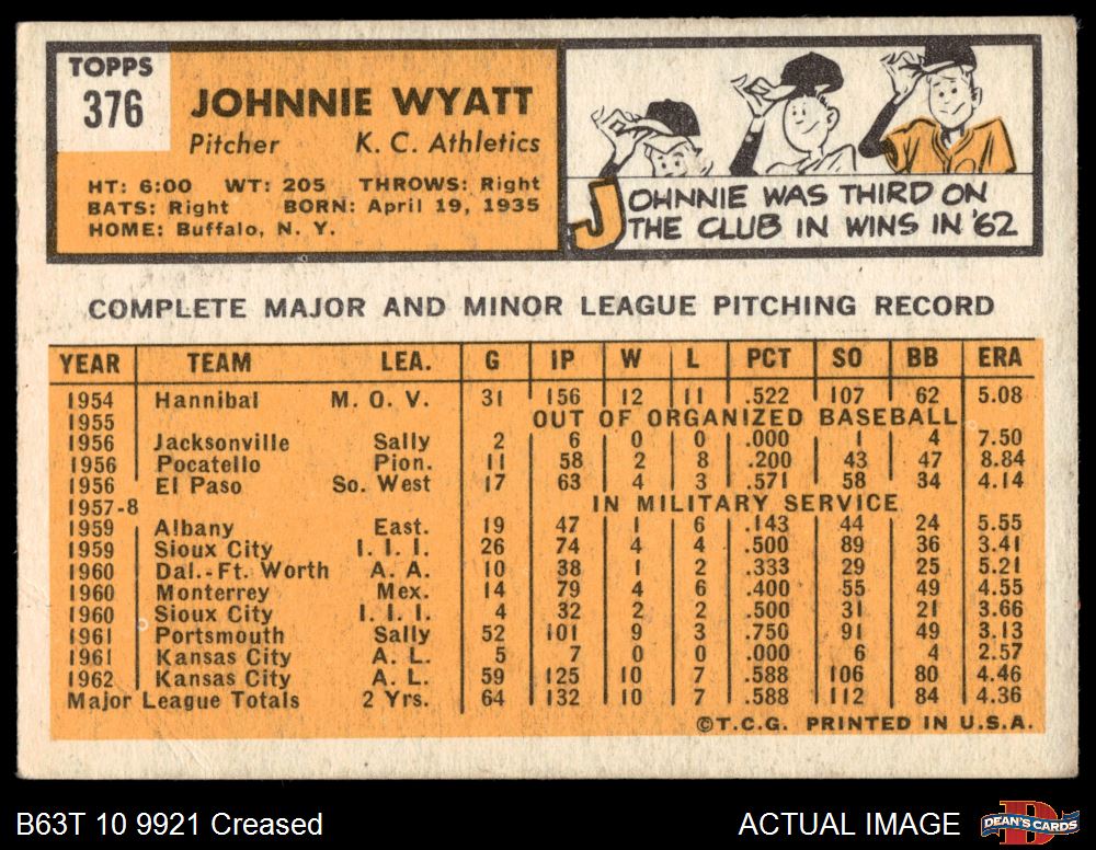 1963 Topps #376 Break or no break in line below "MINOR" between "G" and "IP" John Wyatt 3 - VG