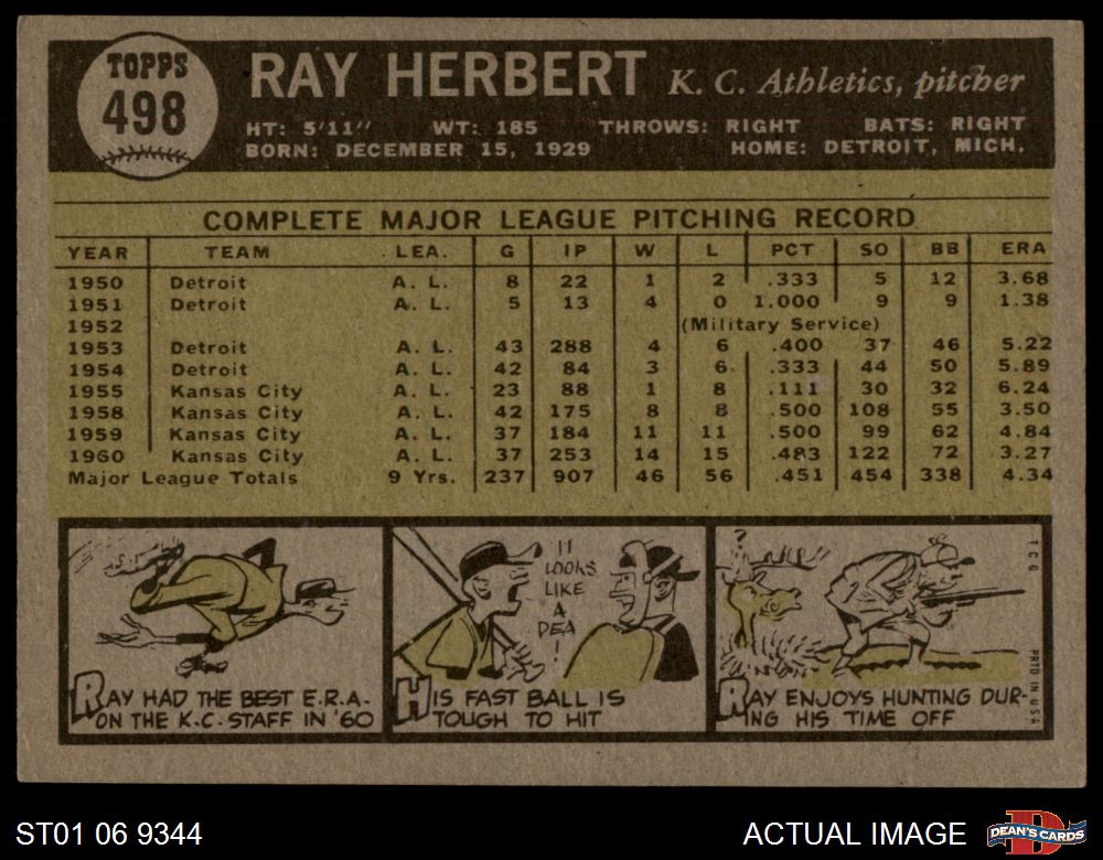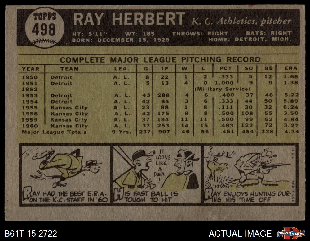 1961 Topps #498 Ray Herbert