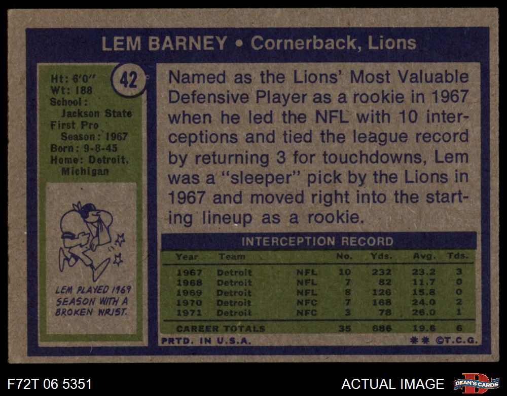 1972 Topps #42 Lem Barney 4.5 - VG/EX+