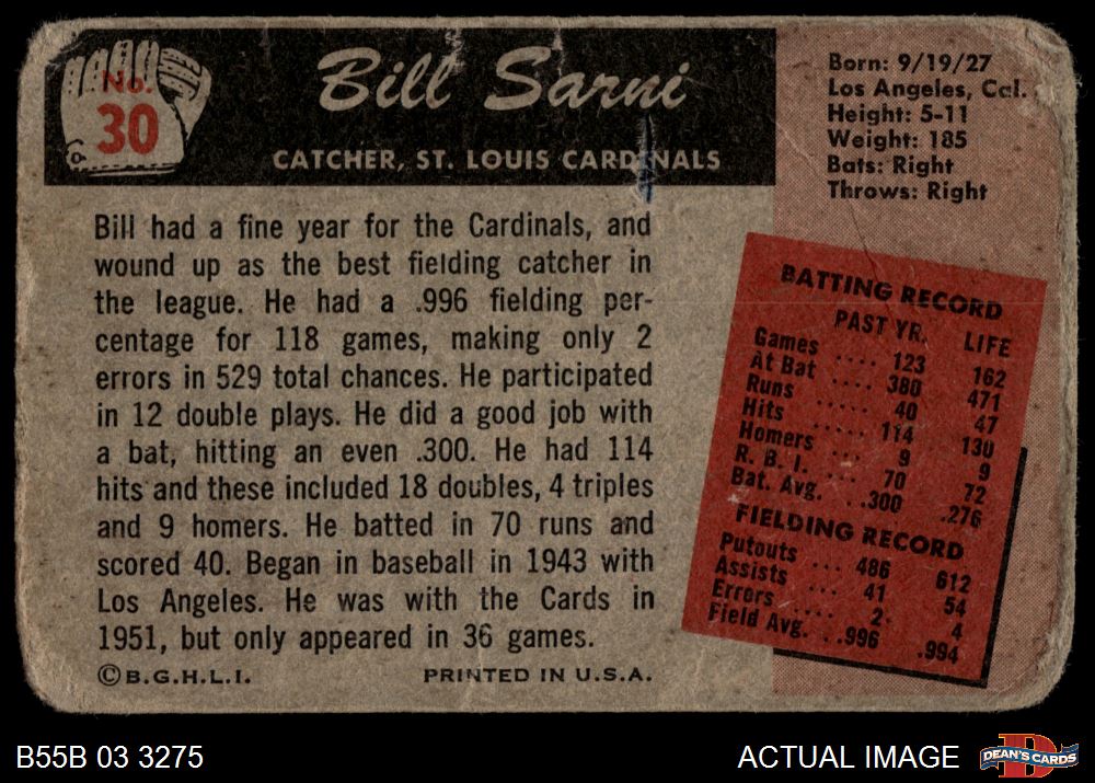 1955 Bowman #30 Bill Sarni AUTHENTIC