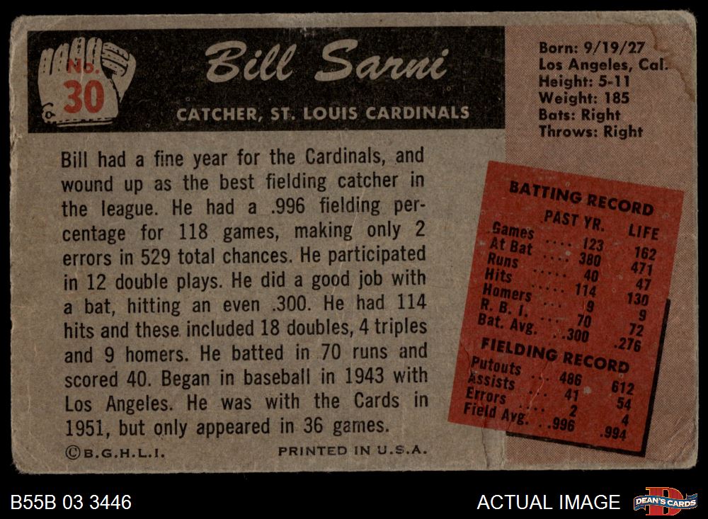 1955 Bowman #30 Bill Sarni 1 - POOR