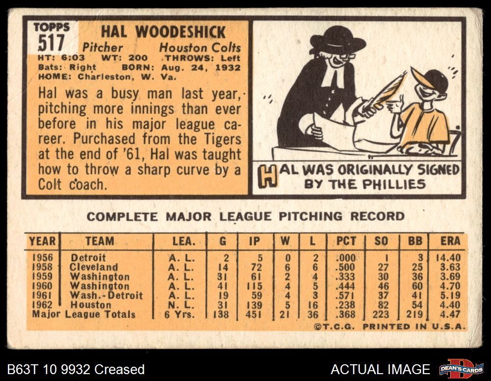 1963 Topps #517 Hal Woodeshick 2 - GOOD