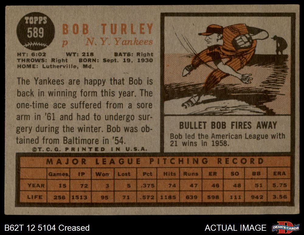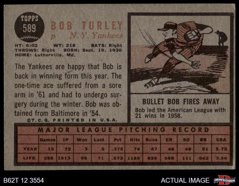 1962 Topps #589 Bob Turley