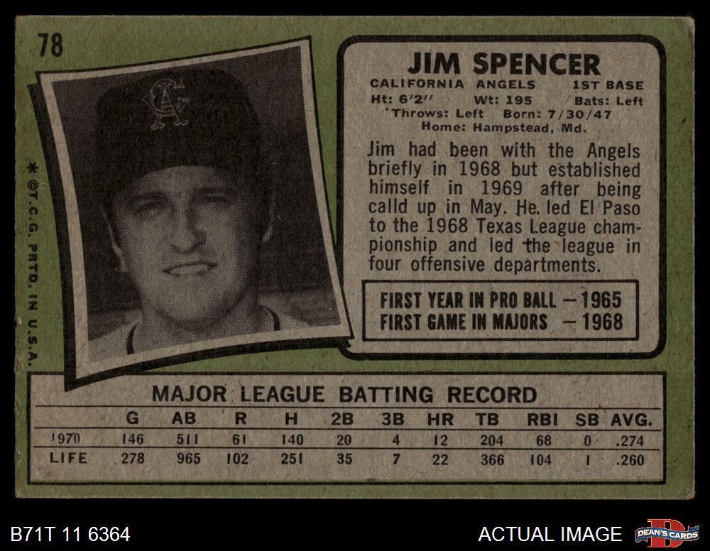 1971 Topps #78 Jim Spencer 2 - GOOD