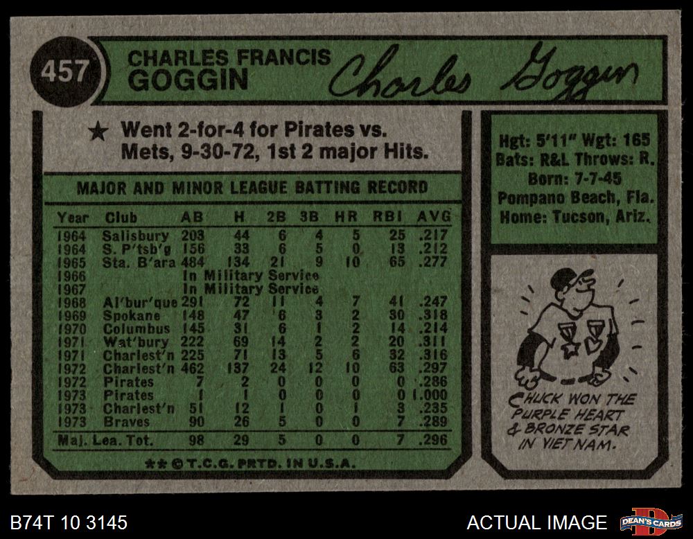 1974 Topps #457 Chuck Goggin