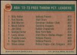 1973 Topps #237 ABA Free Throw Pct. Leaders