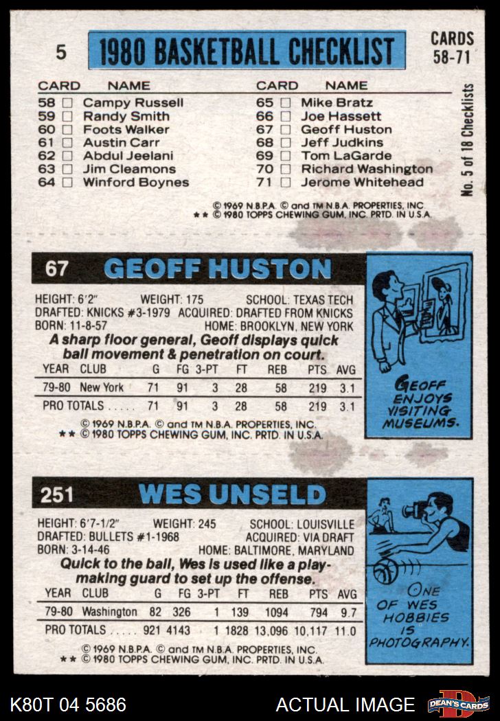 1980 Topps - Wes Unseld / Geoff Huston / John Drew 251 / 67 / 5 2 - GOOD