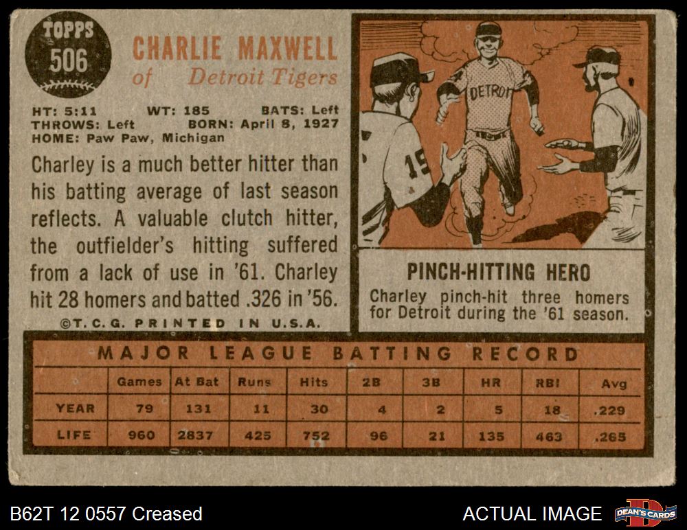 1962 Topps #506 Charlie Maxwell Front Thumbnail