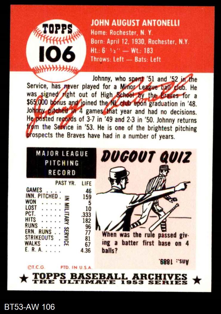 1953 Topps Archives / Reprint (1,398 available)1953 Topps Archives Braves (79 available)