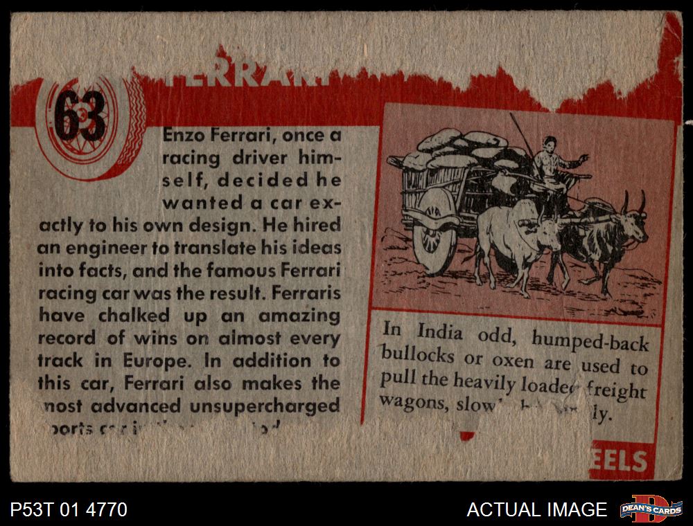1954 Topps World on Wheels #63 Ferrari AUTHENTIC