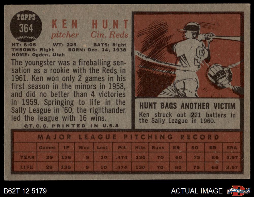 1962 Topps #364 Ken Hunt 1.5 - FAIR