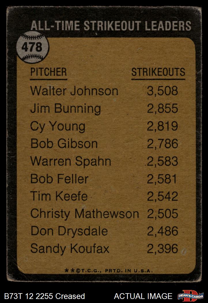 1973 Topps #478 - Walter Johnson All-Time Strikeout Leader 1 - POOR