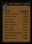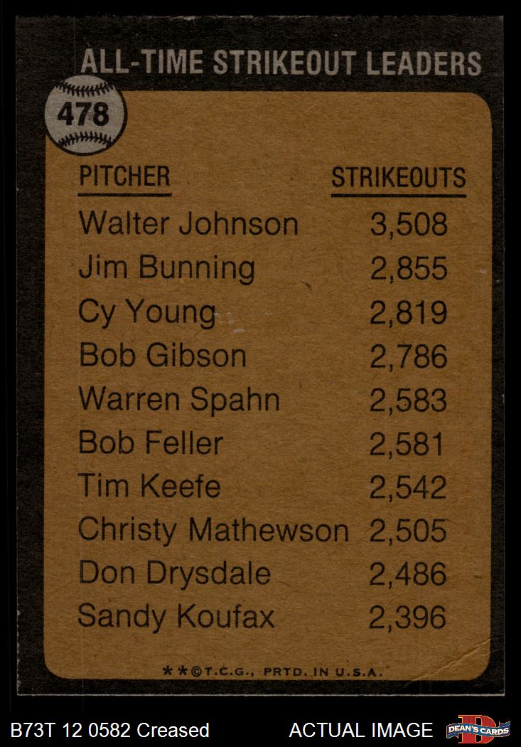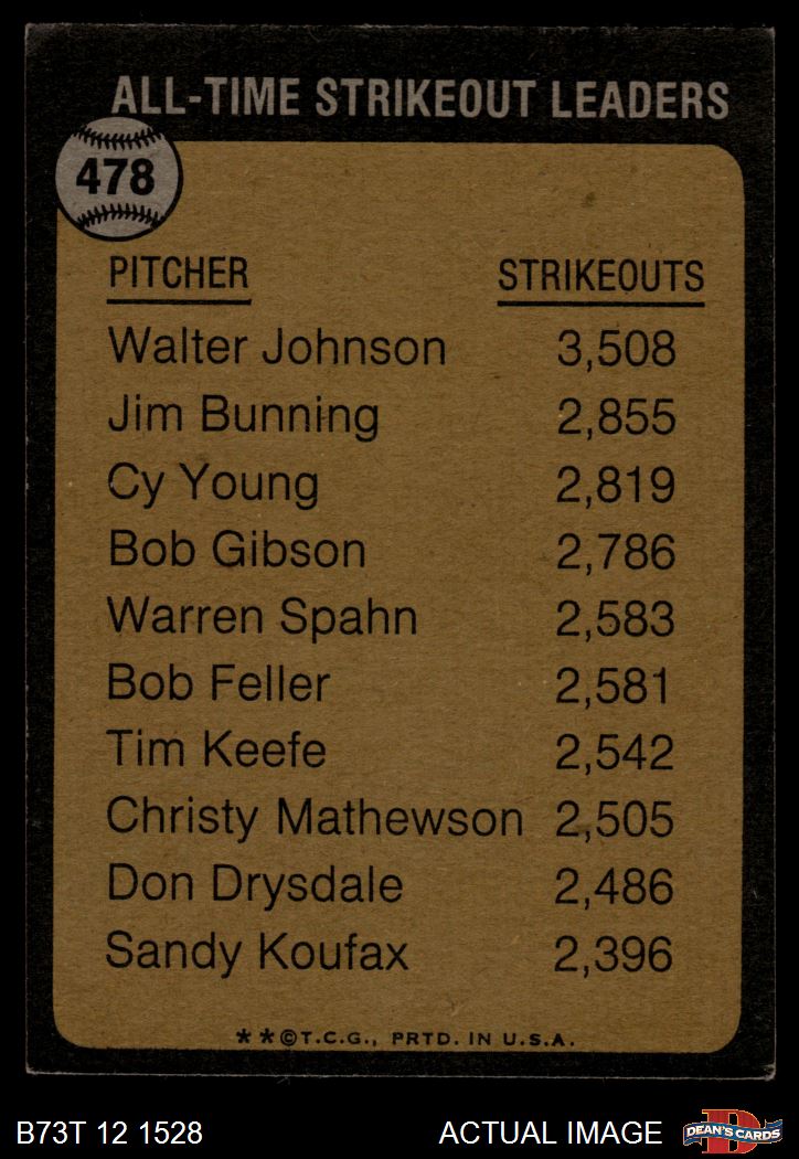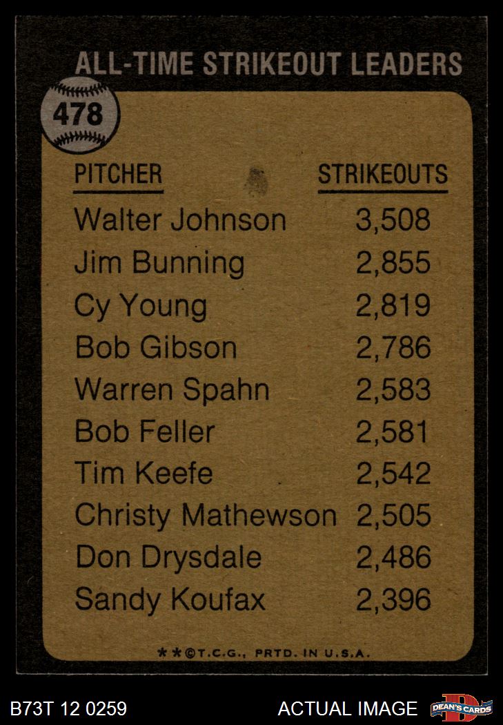 1973 Topps #478 All-Time Strikeout Leader