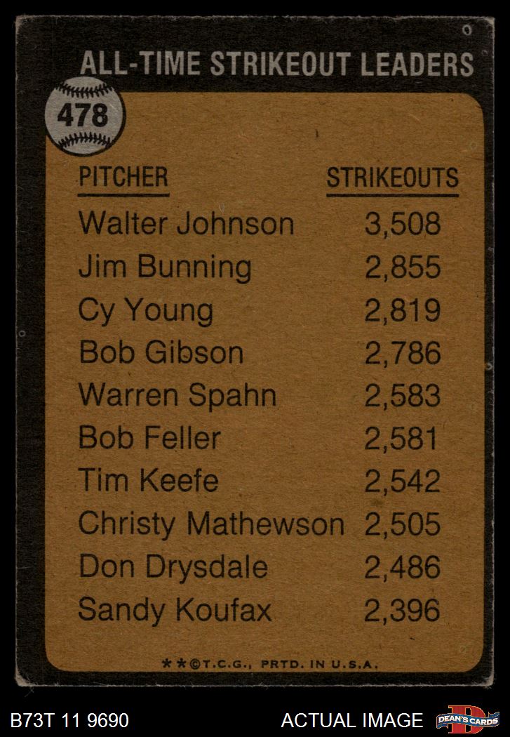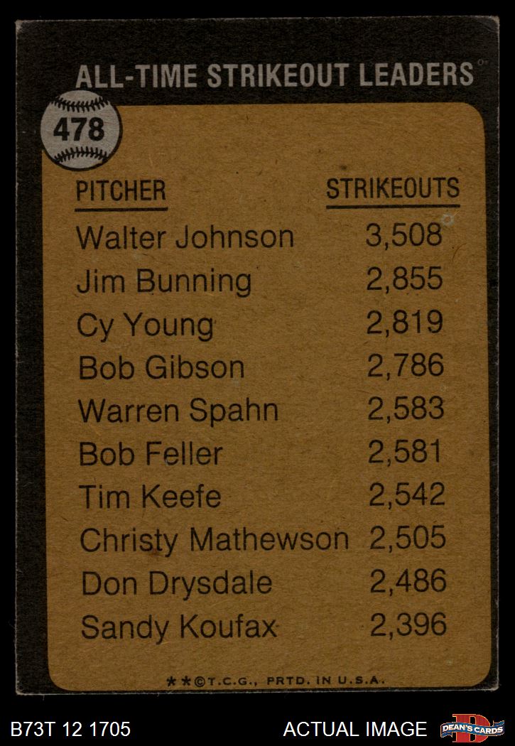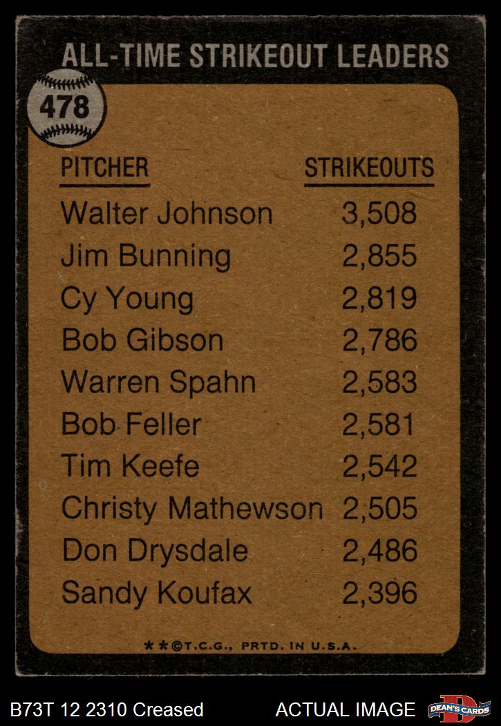 1973 Topps #478 - Walter Johnson All-Time Strikeout Leader 2 - GOOD