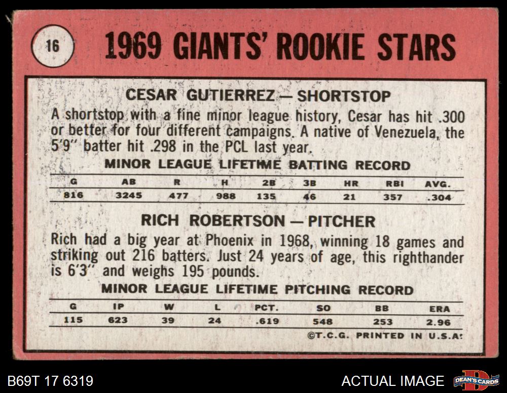1969 Topps #16 - Cesar Guitierrez / Rich Robertson Giants Rookies 3 - VG