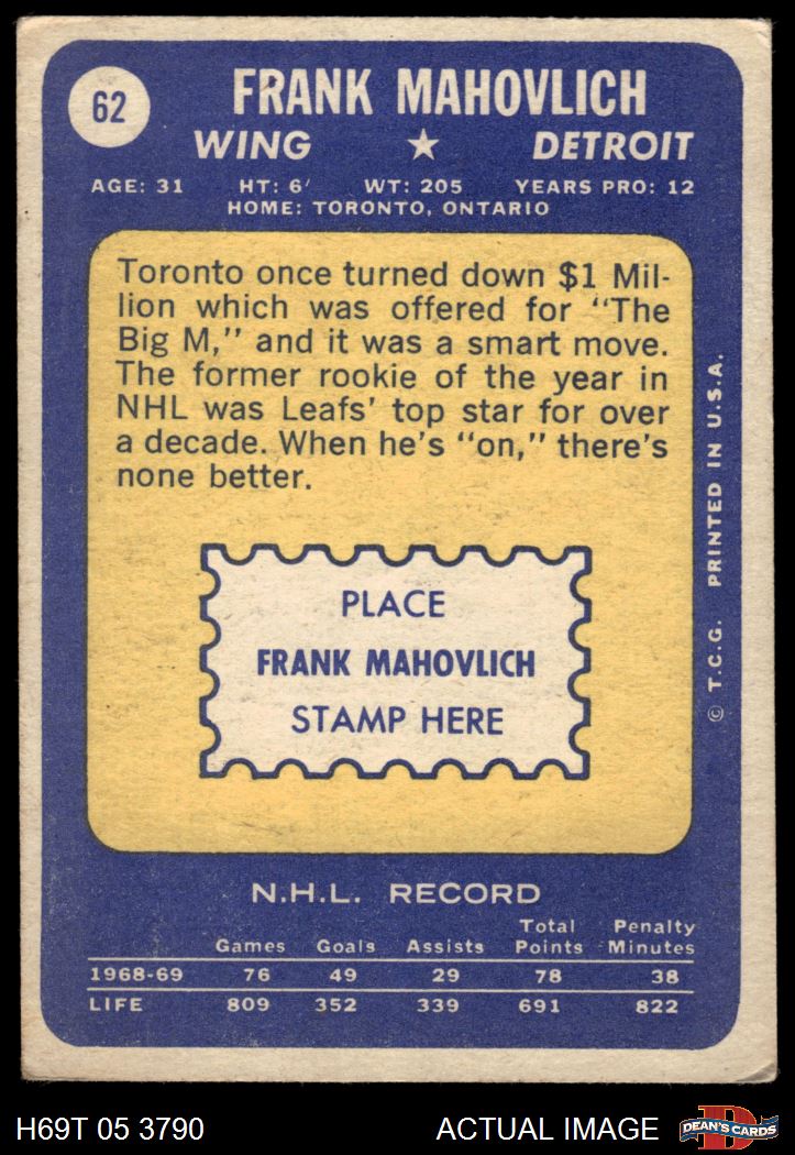 1969 Topps #62 Frank Mahovlich 2 - GOOD