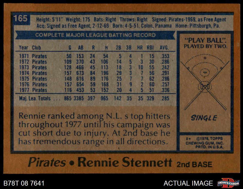 1978 Topps #165 Rennie Stennett 5 - EX