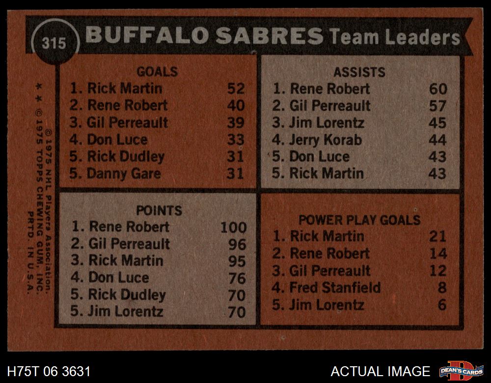1975 Topps #315 - Rick Martin / Rene Robert Sabres Leaders 6 - EX/MT