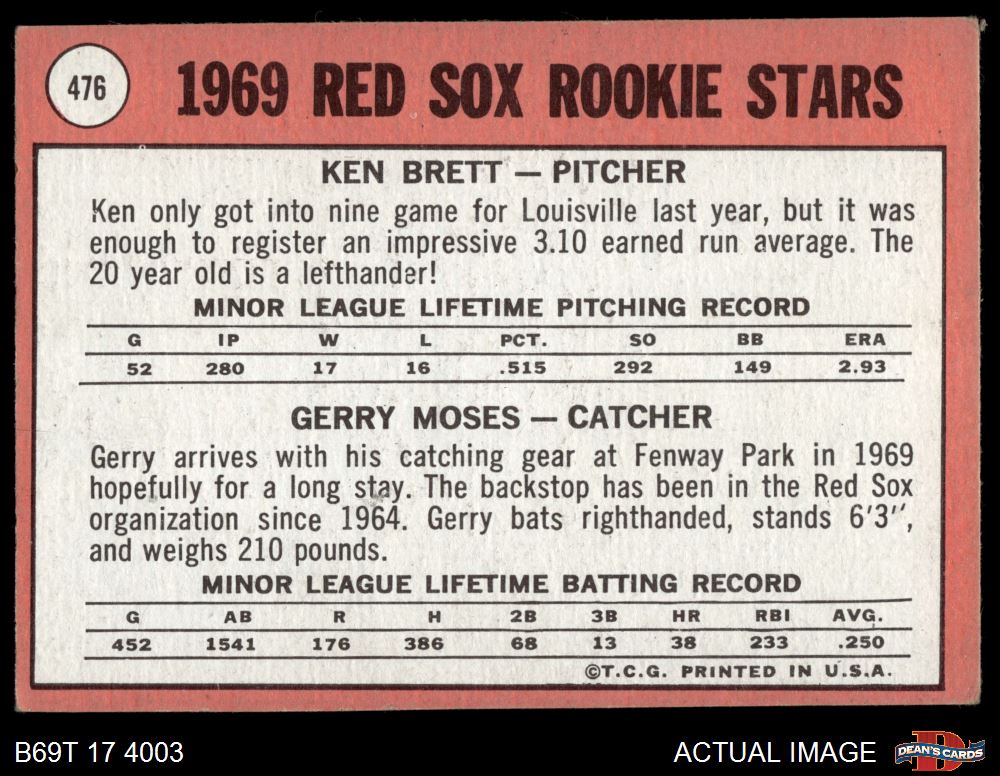 1969 Topps #476 YN - Ken Brett / Gerry Moses Red Sox Rookies 2 - GOOD