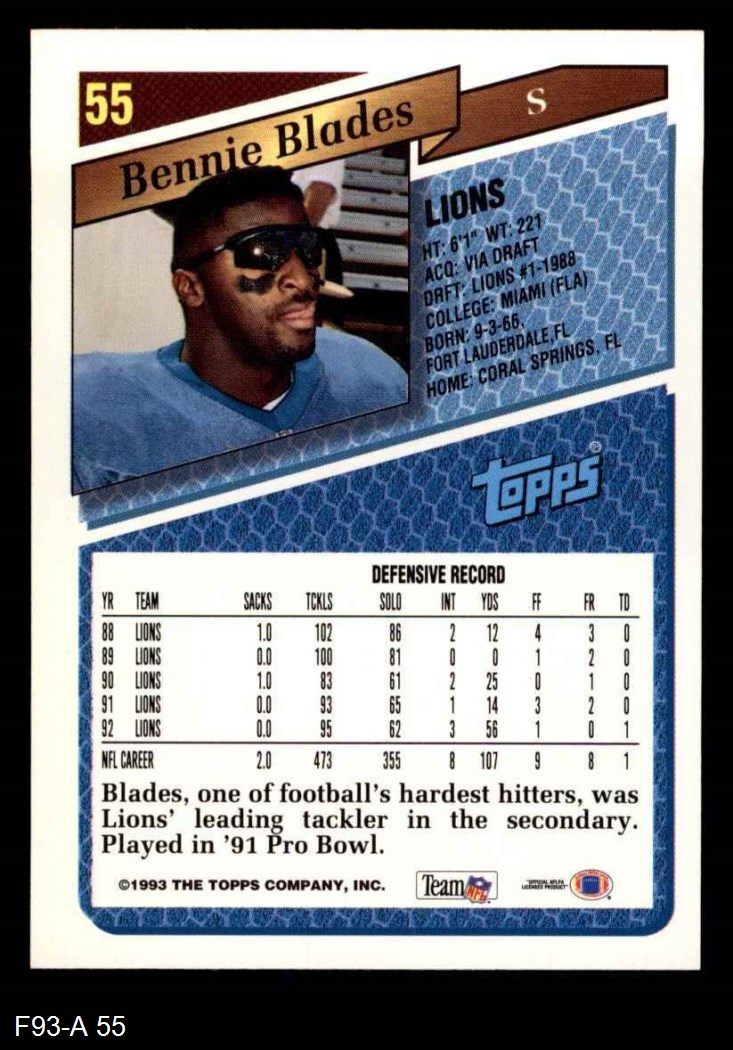 1993 Topps #55 Bennie Blades 8 - NM/MT