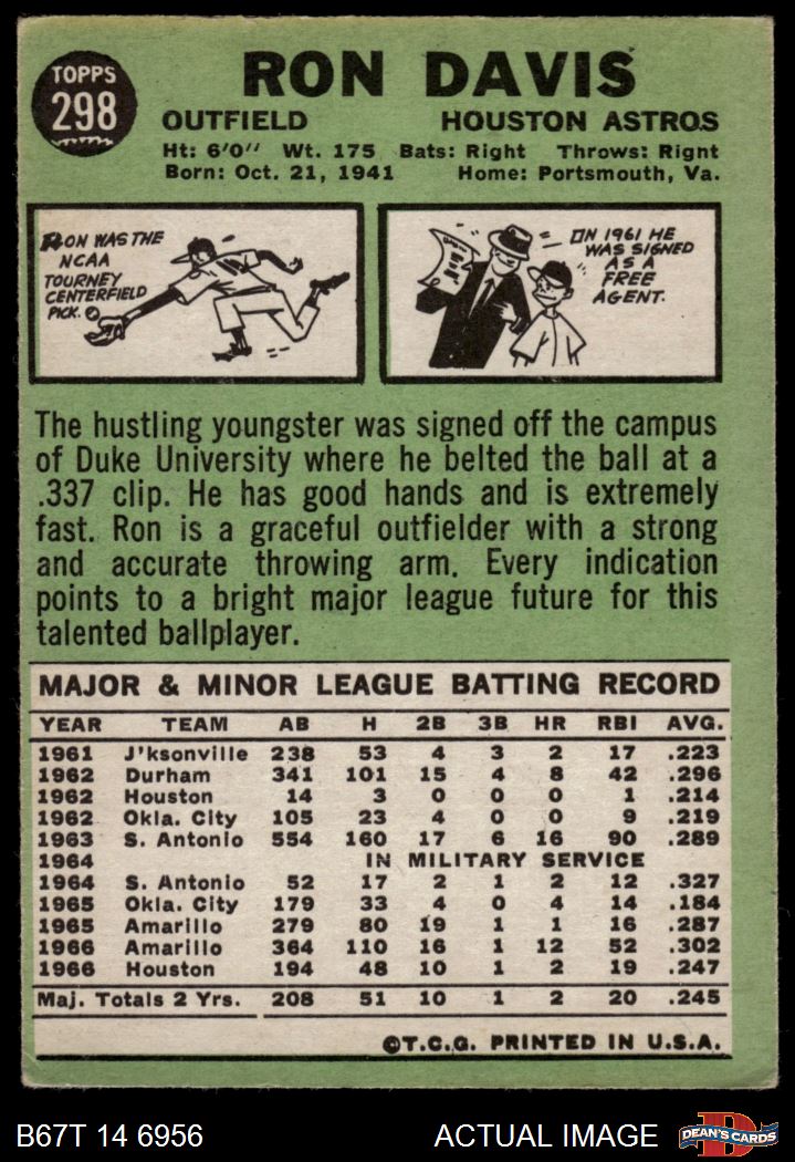 1967 Topps #298 xDOT Ron Davis