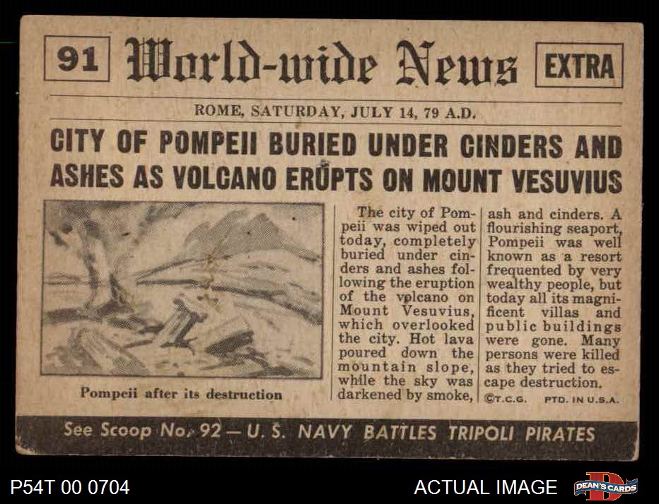 1954 Topps Scoop #91 xCOA Pompeii Destroyed 2 - GOOD