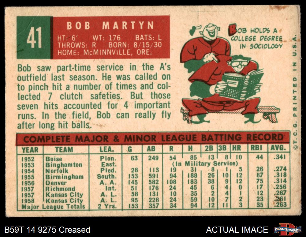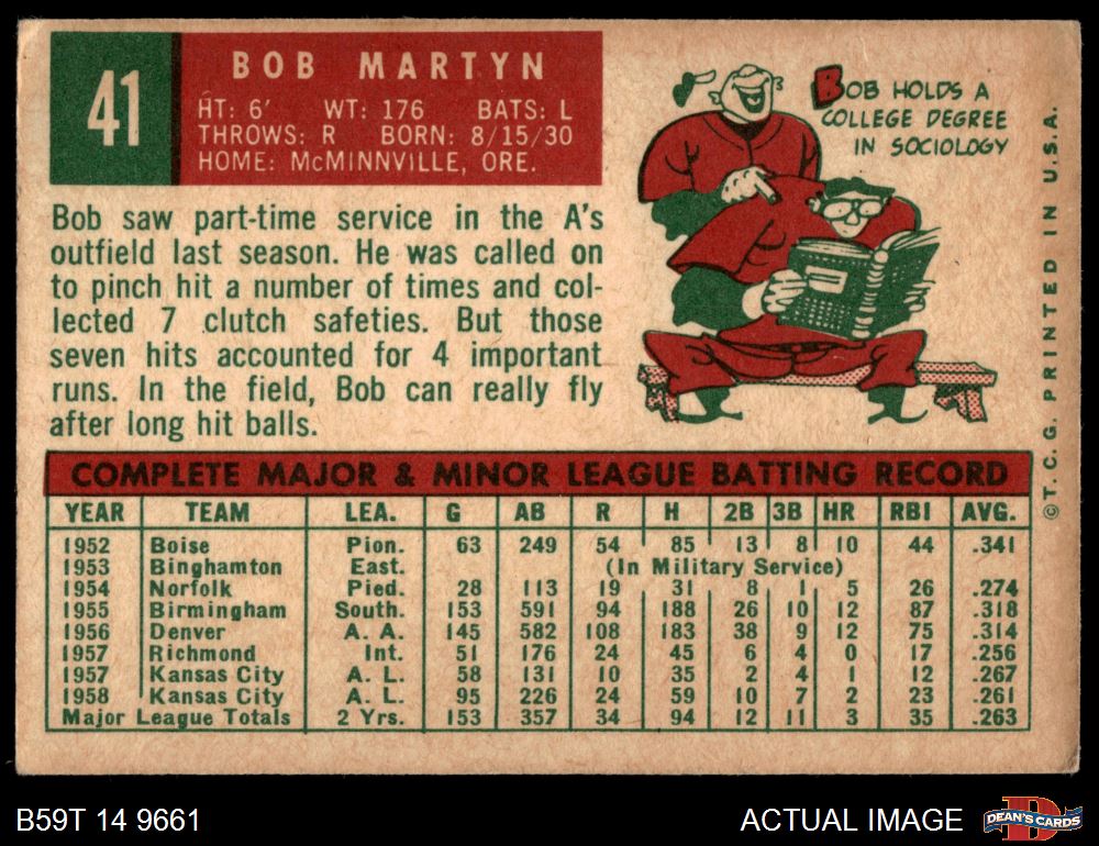 1959 Topps #41 Bob Martyn 3 - VG