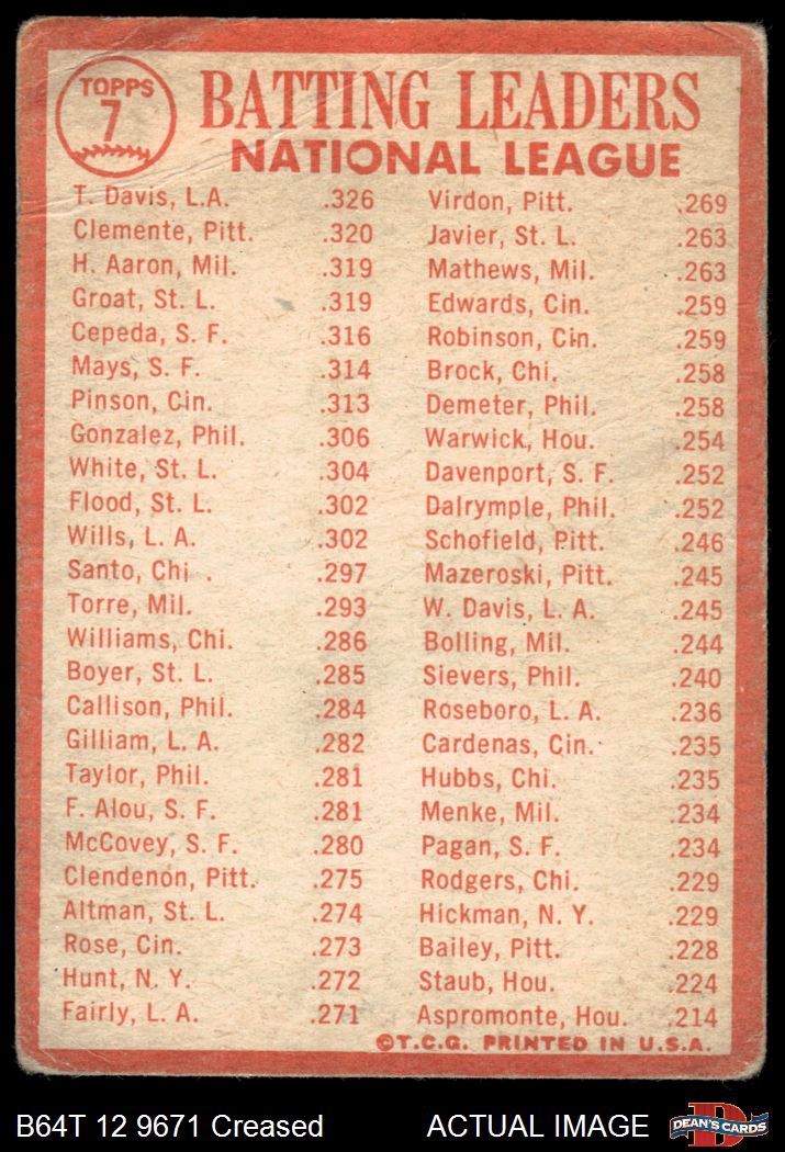 1964 Topps #7 - Roberto Clemente / Hank Aaron / Tommy Davis / Dick Groat NL Batting Leaders 1 - POOR
