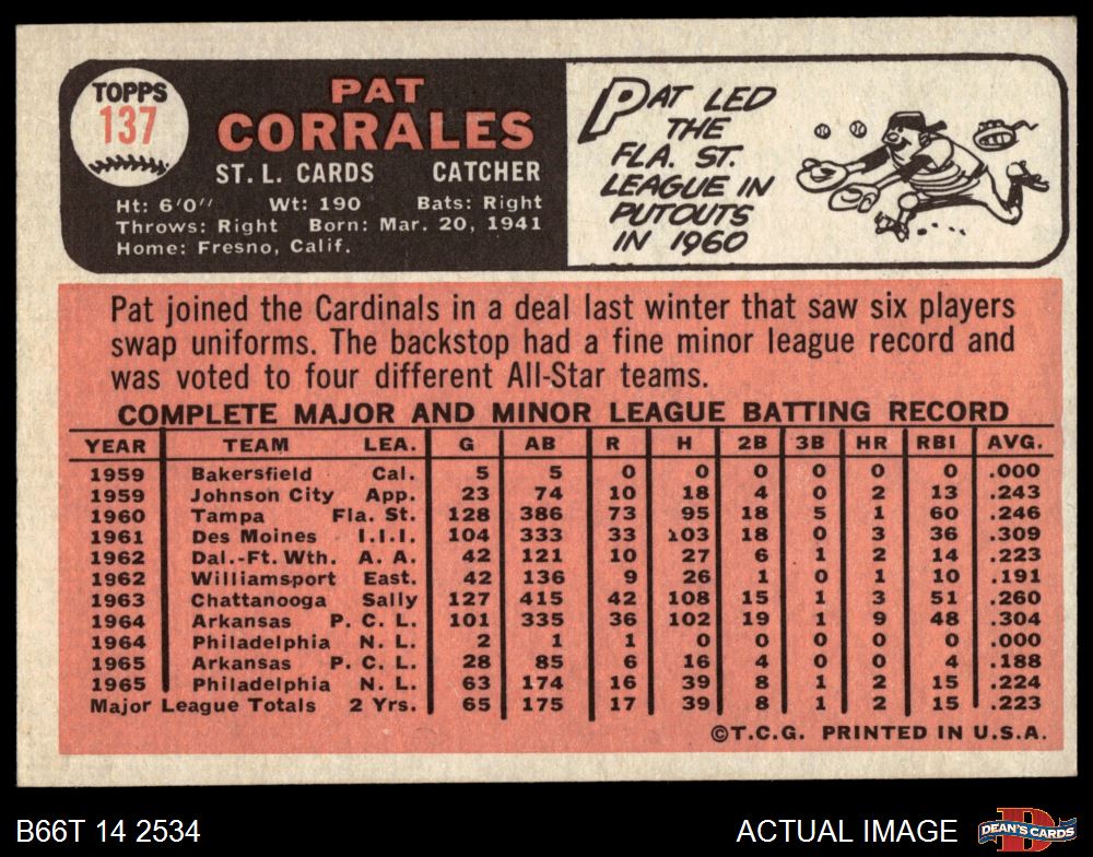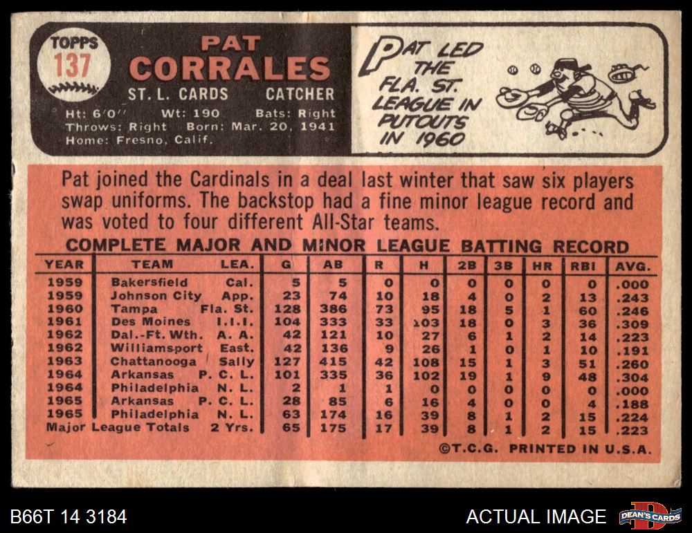 1966 Topps #137 Pat Corrales
