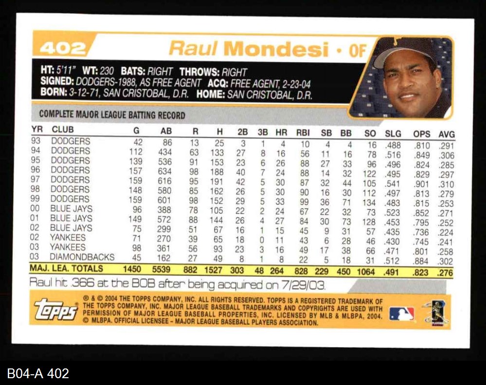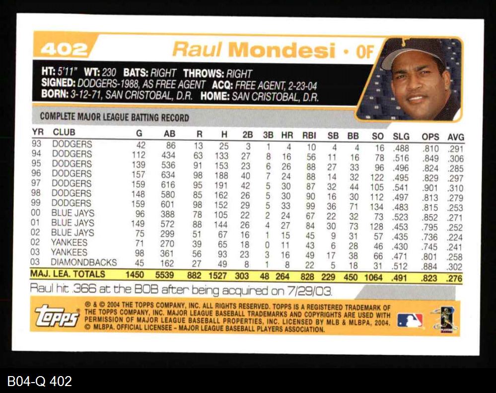2004 Topps #402 Raul Mondesi 8 - NM/MT