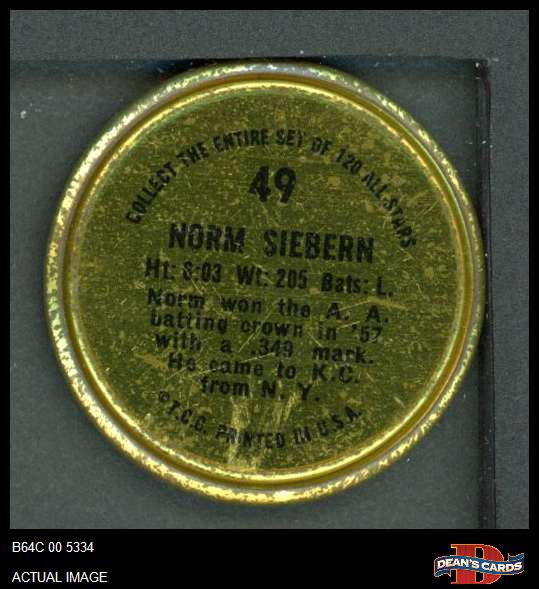 1964 Topps Coins #49 Norm Siebern 2 - GOOD