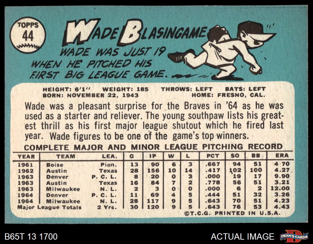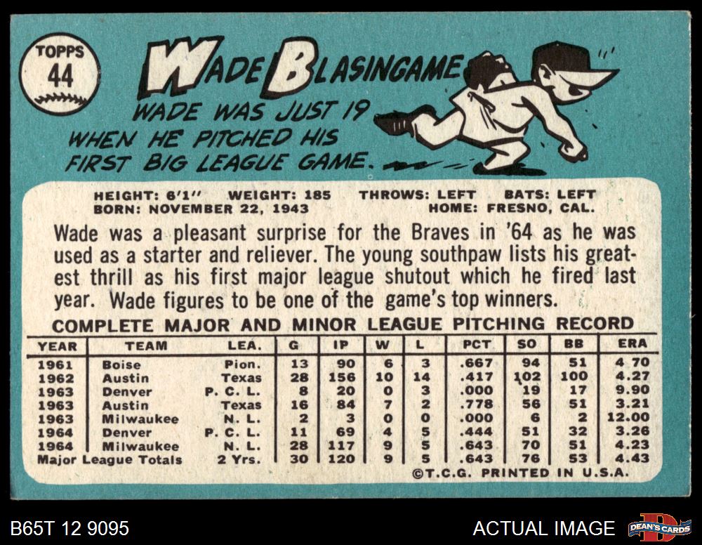 1965 Topps #44 Wade Blasingame