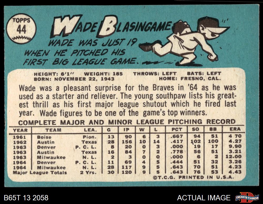 1965 Topps #44 Wade Blasingame 5 - EX