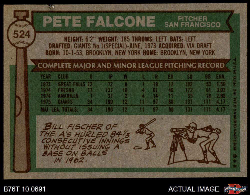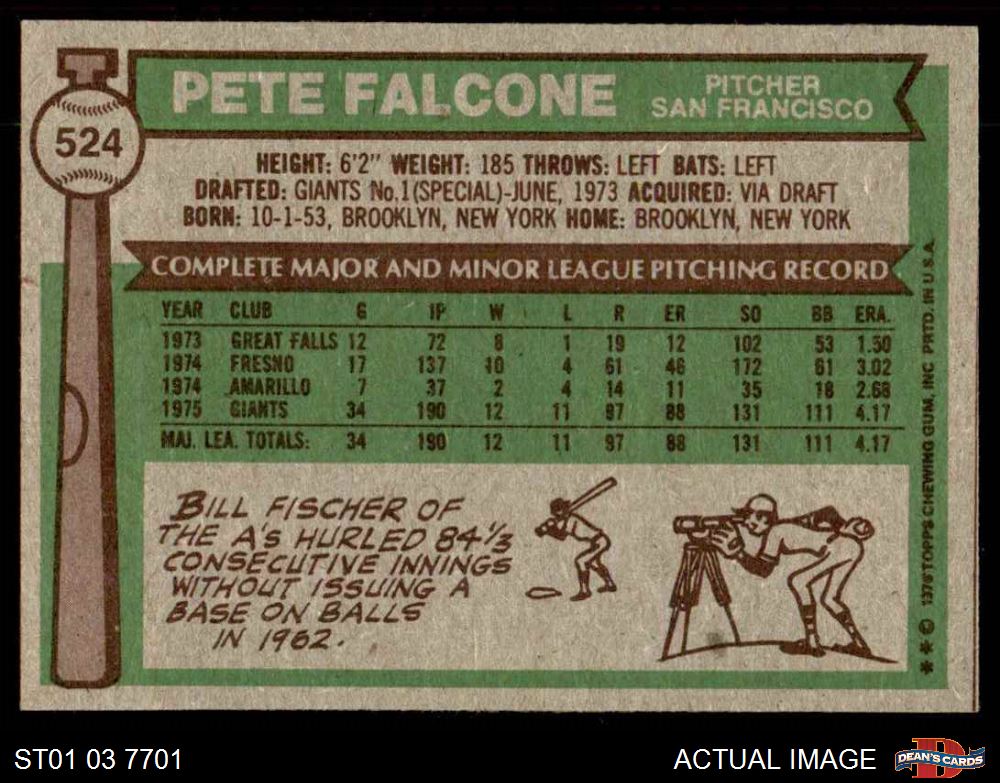 1976 Topps #524 Pete Falcone
