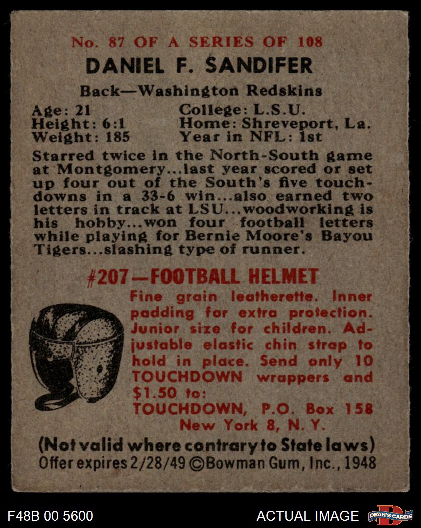 1948 Bowman #87 Dan Sandifer 5 - EX