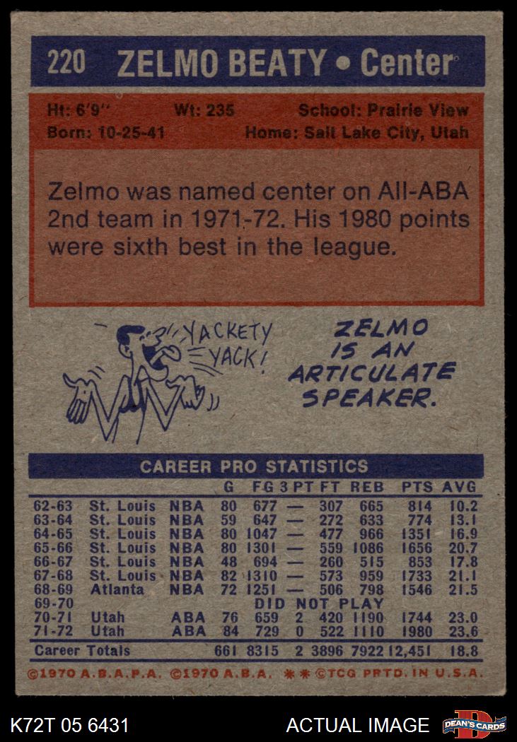 1972 Topps #220 Zelmo Beaty 5.5 - EX+