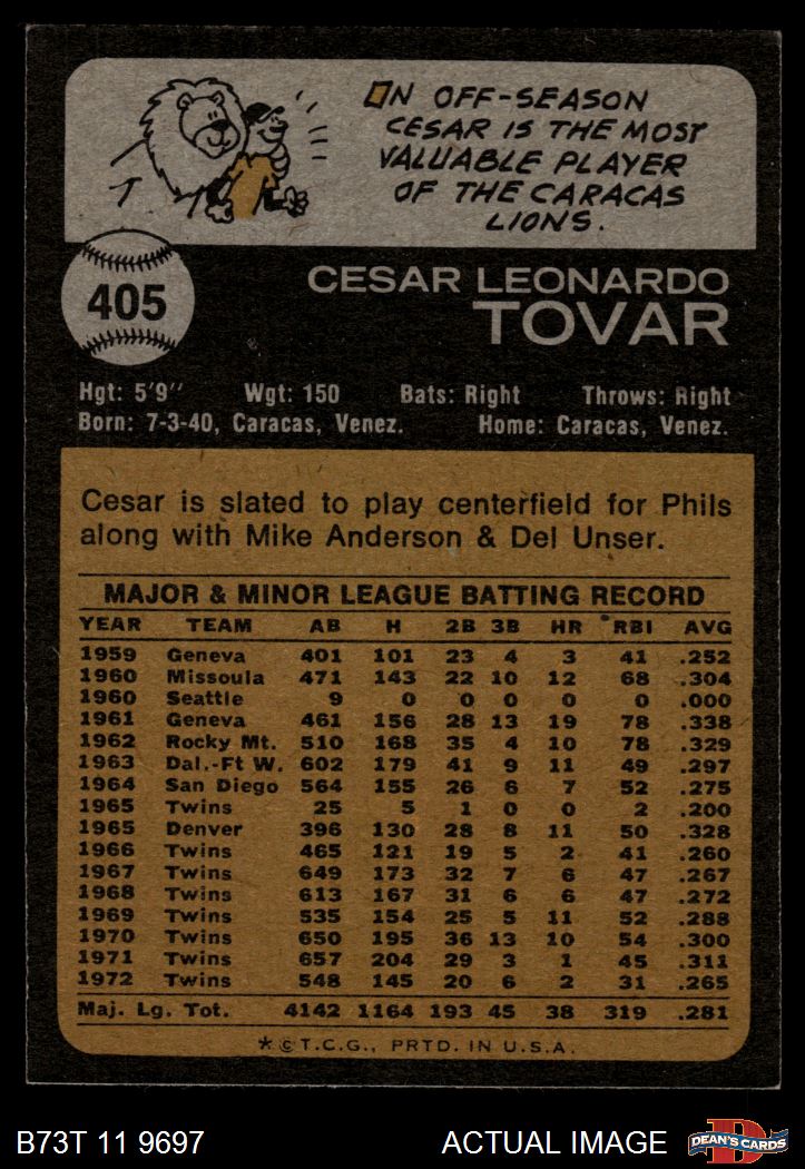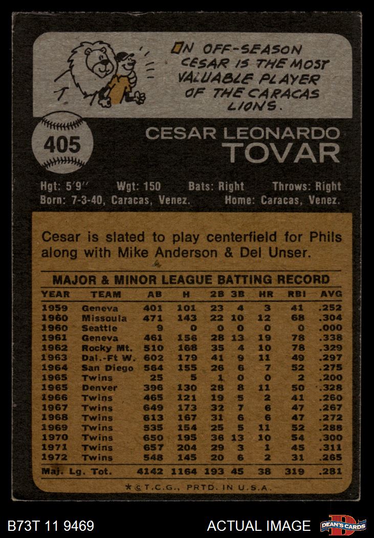 1973 Topps #405 Cesar Tovar