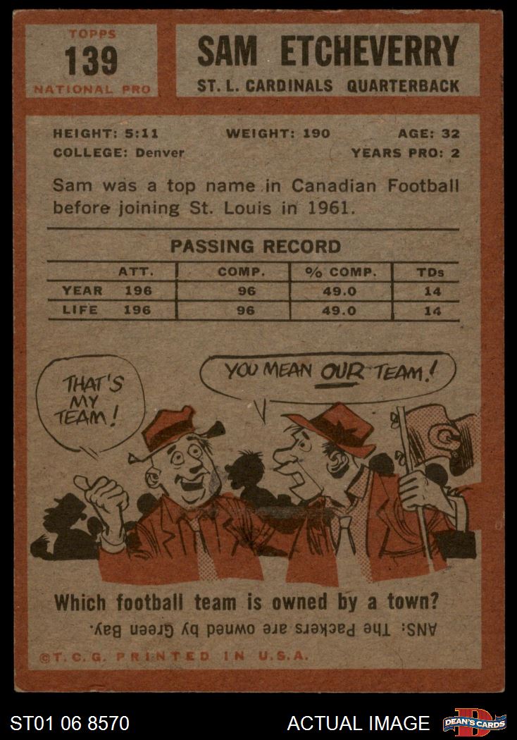 1962 Topps #139 Sam Etcheverry