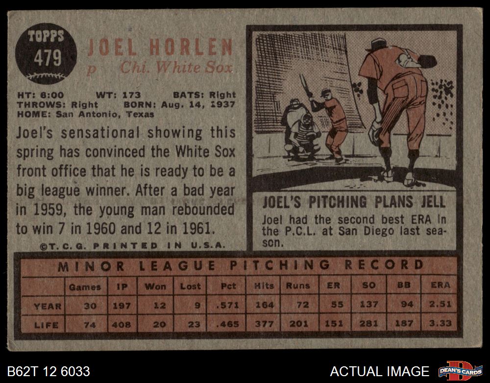 1962 Topps #479 Joel Horlen 2 - GOOD