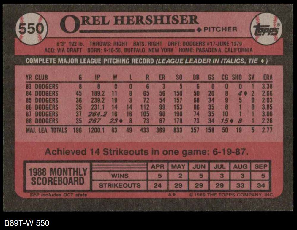 1989 Topps #550 Orel Hershiser
