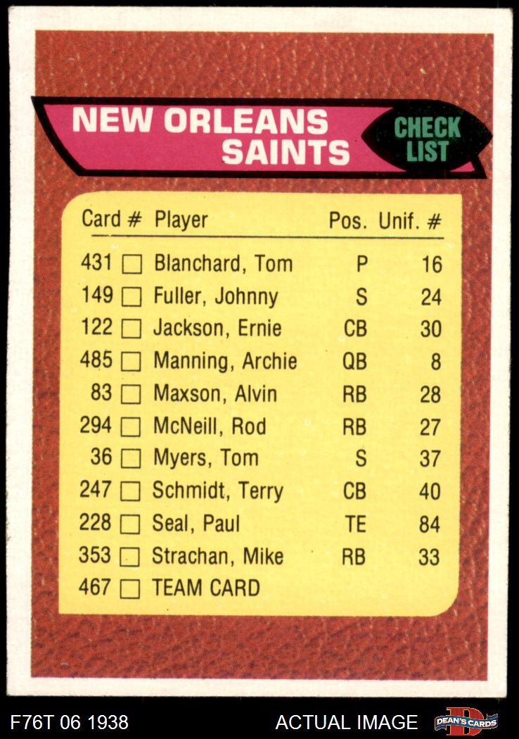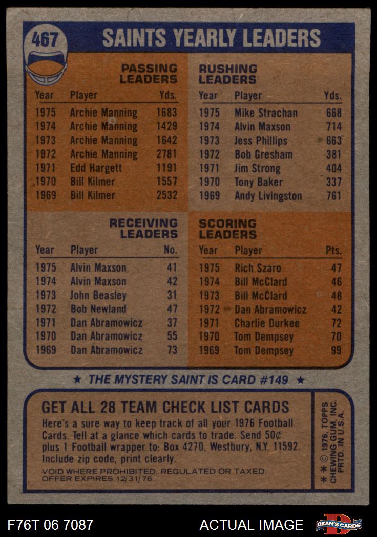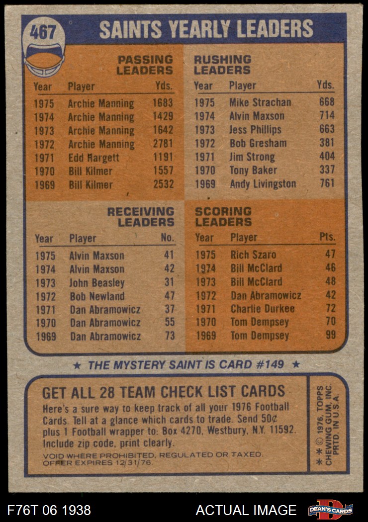 1976 Topps #467 Saints Team Checklist 5 - EX