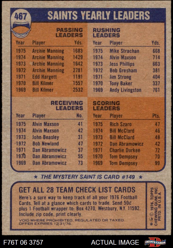 1976 Topps #467 Saints Team Checklist 7 - NM