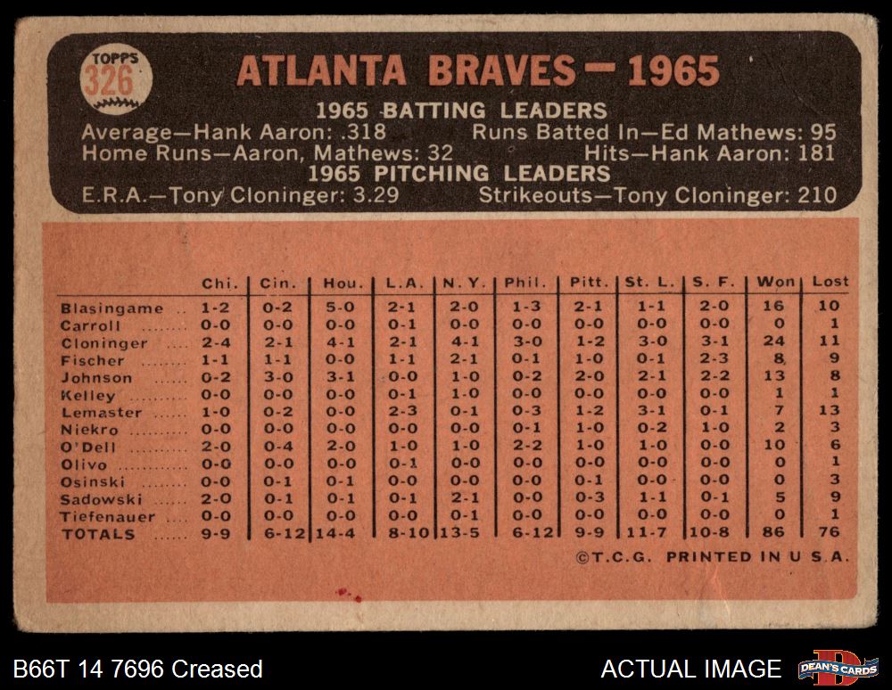 1966 Topps #326 xDOT Braves Team 1 - POOR