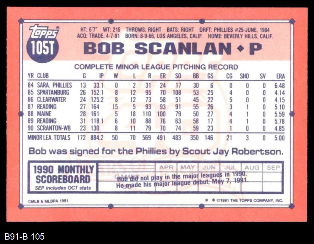 1991 Topps Traded #105 T Bob Scanlan 8 - NM/MT