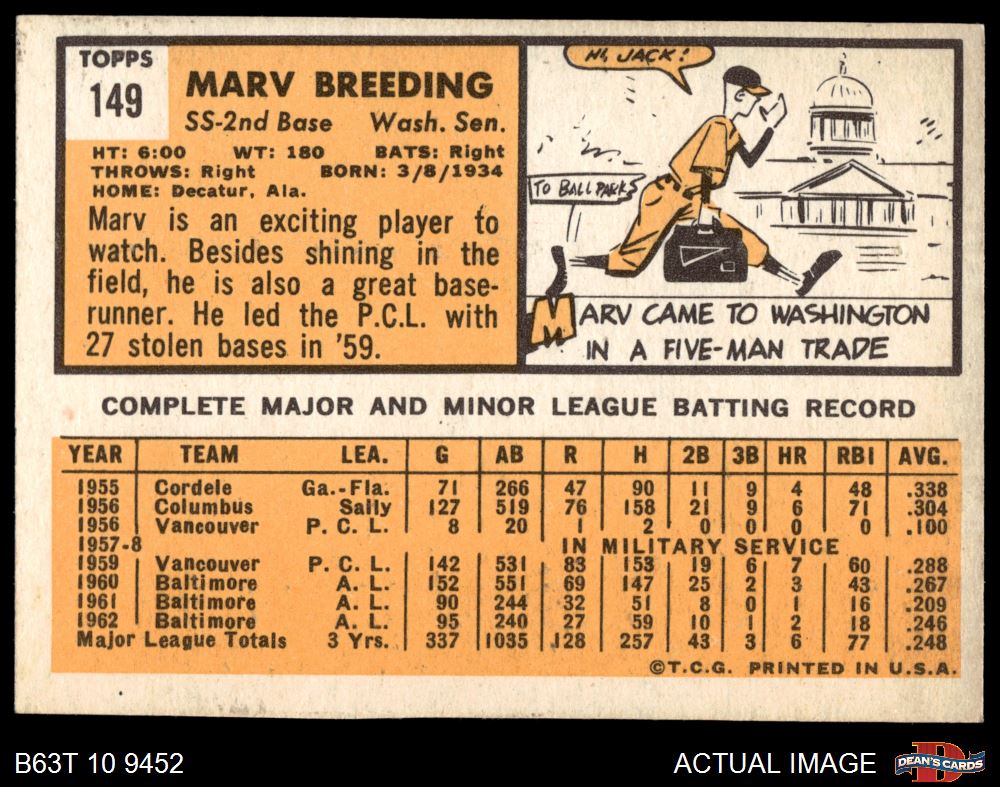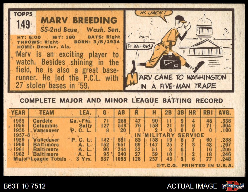 1963 Topps #149 Marv Breeding 4 - VG/EX
