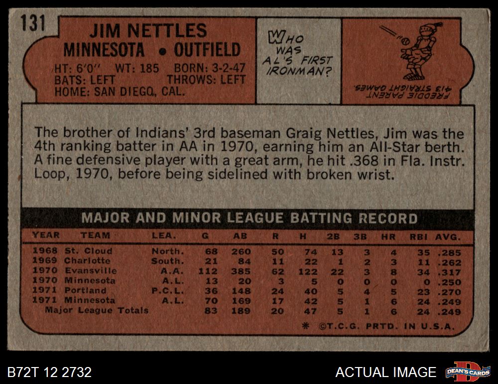 1972 Topps #131 Jim Nettles