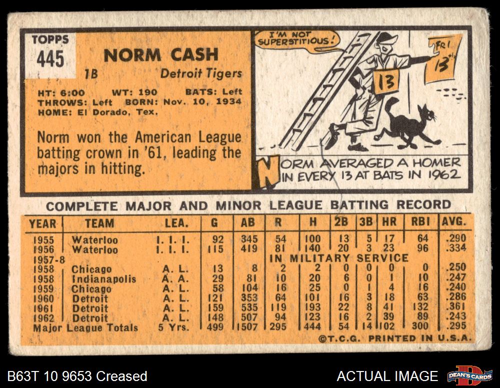 1963 Topps #445 Ball in Inset Photo can touch or not touch Border Norm Cash 1 - POOR